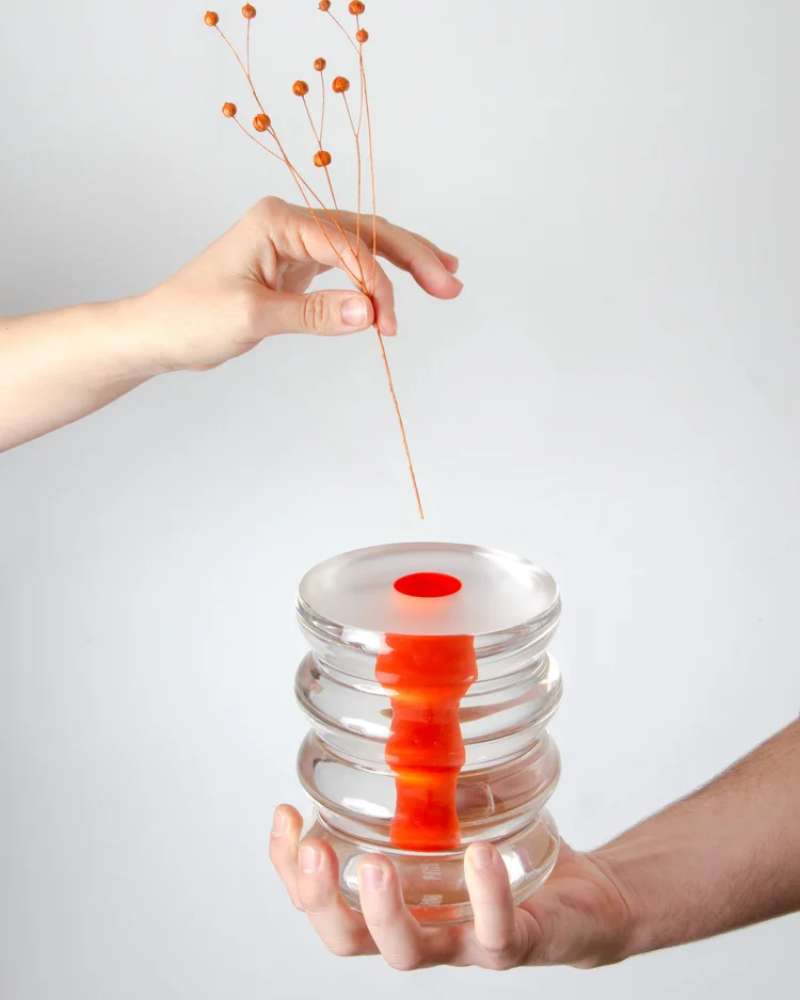 The glass vase Wavy reveals Defrancesco’s understanding of material as a living element. Transparent yet present, it interacts with light, reflections, and its environment. It never appears exactly the same twice. It is both object and atmosphere.