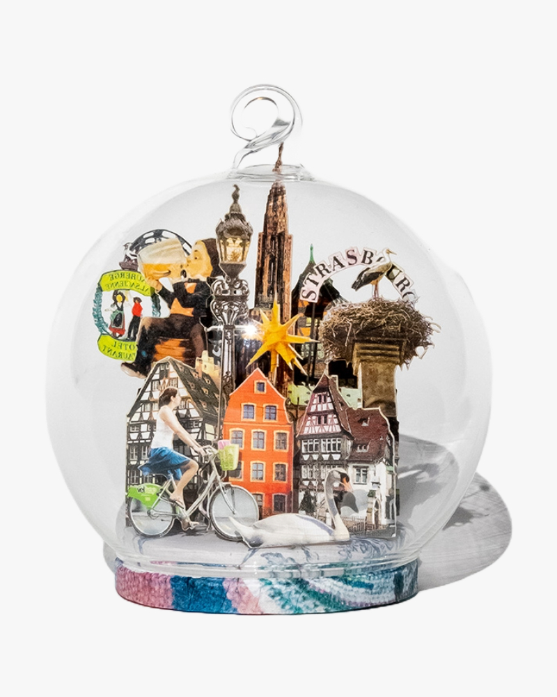 Exclusive Snow Ball / Christmas ornament designed by Charlotte Bourrus and handcrafted with love. Freely inspired by the Globes of the World, these double-sided round Globes offer 2 different scenes.