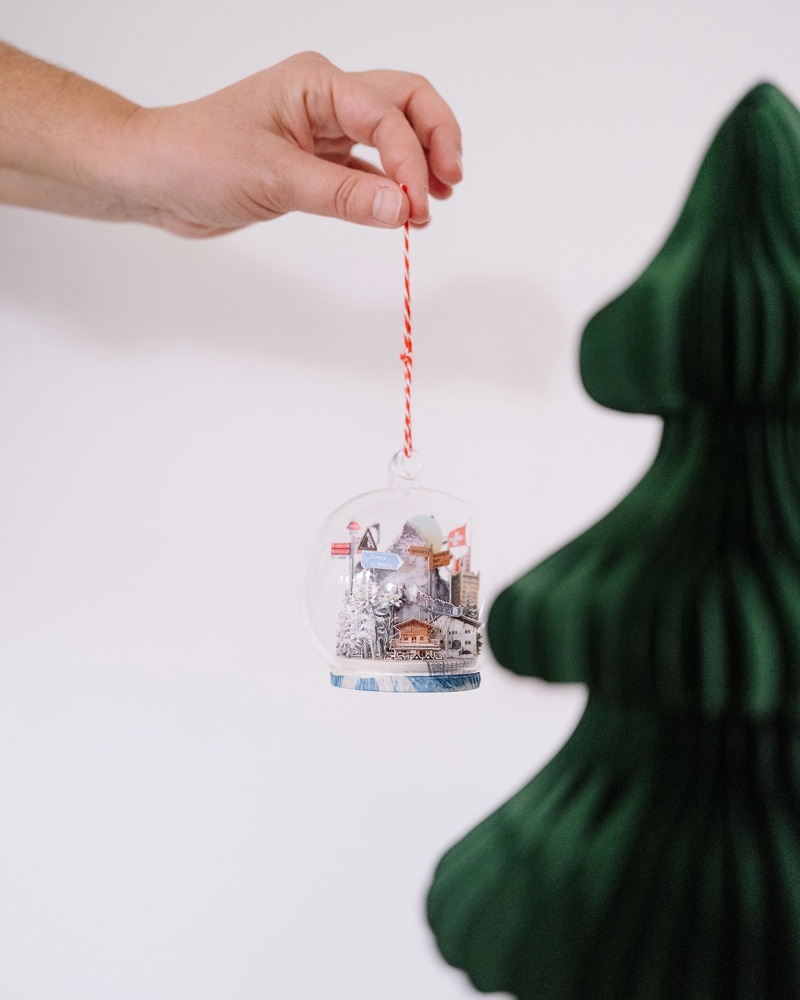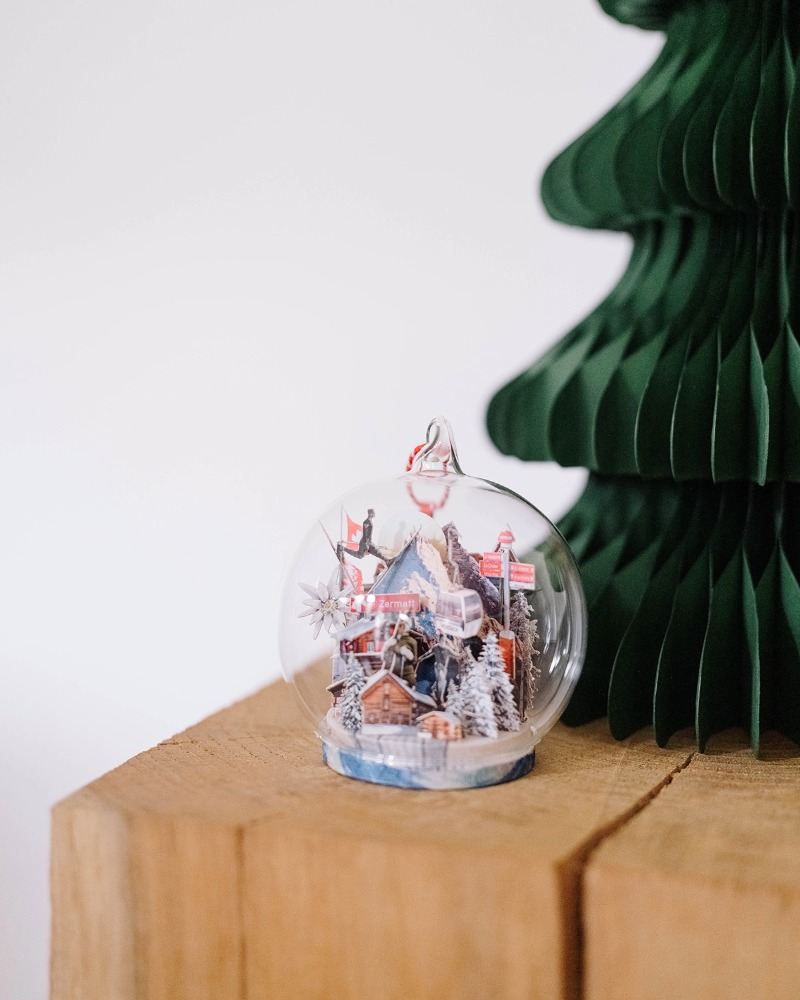 Delicate and poetic, these limited-edition ornaments reimagine the Swiss Alps through the artist’s lens.